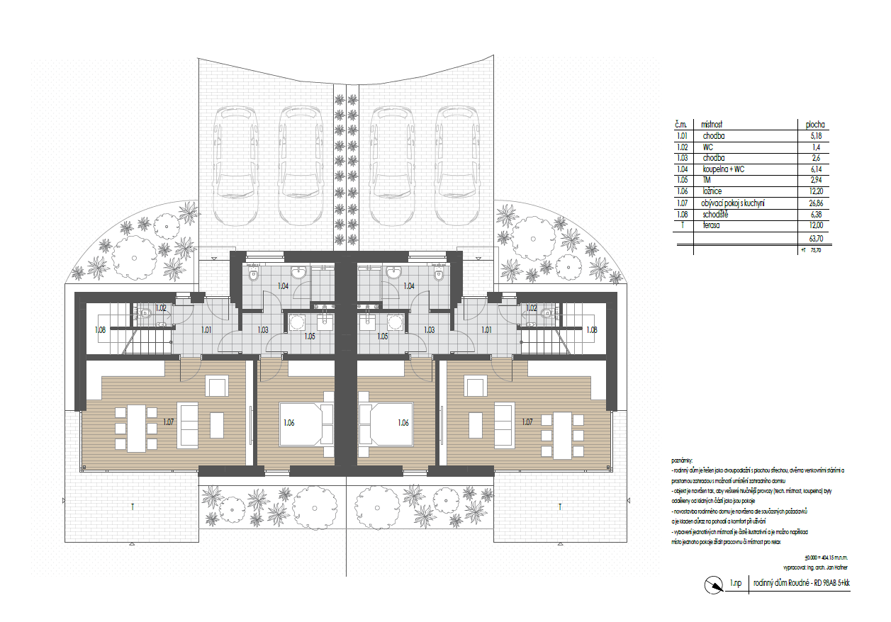 Aktuálně zahájená výstavba rodinného dvojdomku v rámci ZTV Roudné. Objekt má 2 nadzemní podlaží, prostornou zahradu s možností zahradního domku a venkovní parkování s plochou pozemku 489 m2 resp. 458 m2.