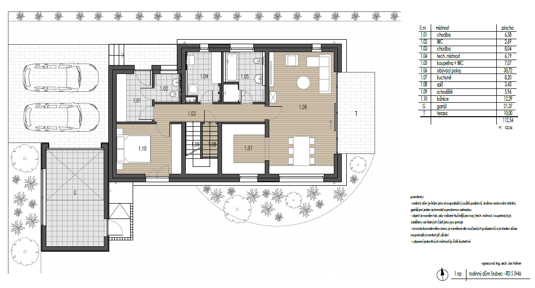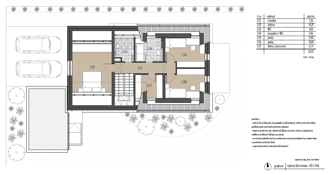 Moderní zpracování je samozřejmostí a společně s prostornými místnostmi, počínaje velkým obývacím pokojem s kuchyní, nabízí komfortní rodinné bydlení. Celková užitná plocha objektu činí přibližně 175,5 m2 . Součástí nabídky je i terasa o výměře cca 10 m2.