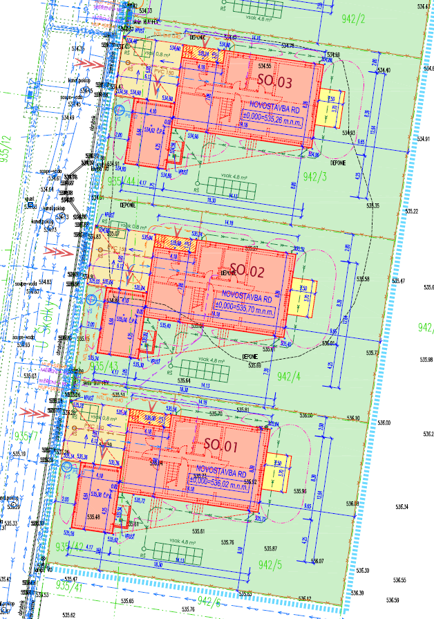 Aktuálně zahájená výstavba tří rodinných domů v rámci ZTV Srubec na p.č. 942/3+935/44, 942/4+935/43, 942/5+935/42. Objekty mají 1 nadzemní podlaží s obytným podkrovím, prostornou zahradu a garáží pro jeden automobil (či bez garáže) s plochou pozemků od 551 do 554 m2.